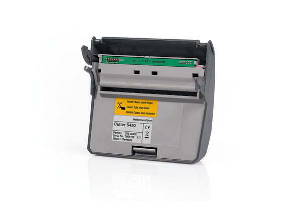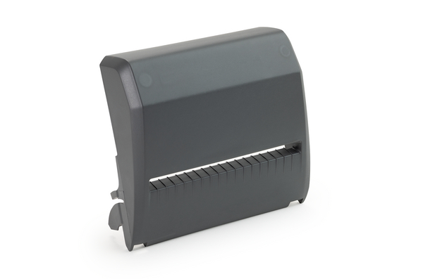 - Nóż tnący jest przeznaczony do cięcia drukowanych w drukarce koszulek i etykiet w formie ciągłej, na określoną długość. Jest on inicjalizowany automatycznie w momencie włączenia zasilania drukarki. Montaż noża odbywa się w prosty sposób poprzez włożenie w prowadnice i zamknięcie na zatrzask.