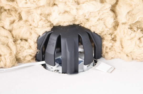 SpotClip-IV Slim zapewniają bezpieczny odstęp pomiędzy źródłem światła a folią paroizolacyjną i materiałem izolacyjnym co obniża ryzyko przegrzania, kumulacji ciepła i przedwczesnego pogorszenia się oświetlenia. Zostały opracowane do bezpiecznego użytkowania i montażu ultra płaskich lamp LED i nadają się do otworów sufitowych o średnicy od 73 do 83 mm. Cztery dodatkowe, elastyczne ramiona zapobiegają kontaktowi luźnego materiału izolacyjnego z oprawą, dzięki czemu idealnie nadają się do stosowania z sypkimi i instalowanymi metodą wdmuchiwania materiałami izolacyjnymi. Ramiona można łatwo usunąć, aby ułatwić instalację kabli. SpotClip-IV Slim można łatwo zainstalować podczas lub po zakończeniu budowy. Zostały przetestowane zgodnie z normami EN 60598-1, EN 60598-2-2 oraz NF C 15100. |