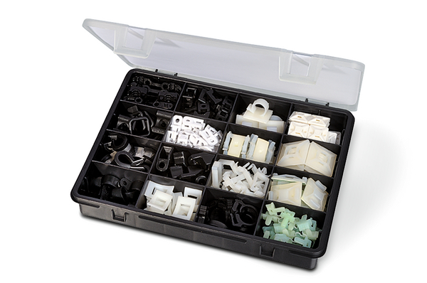 - Praktyczny 195 częściowy zestaw zawiarający snappery oraz aluminiowe i plastikowe obejmy mocujące
