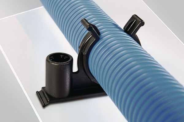 | Zastosowanie | Uchwyty tego typu są używane w przemyśle samochodowym i elektrotechnicznym, przy produkcji wiązek i wszędzie tam, gdzie rury karbowane muszą być szybko i pewnie mocowane. |