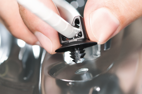 | Zastosowanie | Uchwyty te są mocowane poprzez wciśnięcie w otwór a zamknięcie jest sygnalizowane słyszalnym kliknięciem. Wiązki kablowe mogą być dołożone po montażu. |