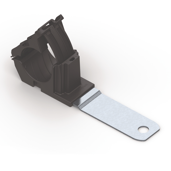 - PA66 modyfikowany udarowo, stabilizowany cieplnie i odporny na działanie promieniowania UV, umożliwia długotrwałe stosowanie obejmy wewnatrz jak i na zewnątrz