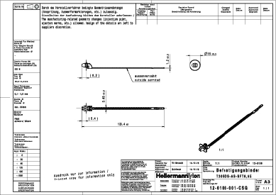 | Krótki opis | Opaska jednoczęściowa 126,4x3,45 mm, z mocowaniem kotwicowym, z talerzykiem, kolor czarny |
