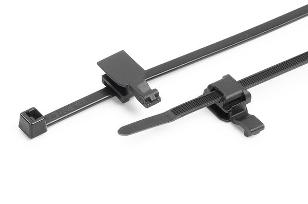 | Zastosowanie | Te opaski dwuczęściowe z uchwytem złącza zostały zaprojektowane do wiązania i mocowania przewodów elektronicznych i wiązek kablowych używanych w przemyśle motoryzacyjnym. Prosty montaż polegający na wciśnięciu złącza w zaczep zapewnia bezpieczne i soline mocowanie przez cały czas. |