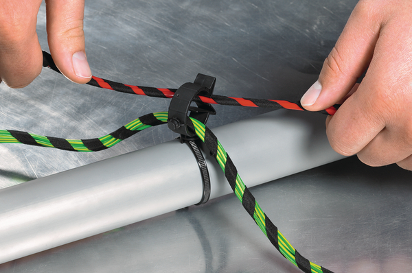 | Zastosowanie | Opaski te są stosowane do instalacji dodatkowych przewodów do istniejącej wiązki. Dzięki różnym kątom skrętu elementu mocującego i kierunkom prowadzenia przewodów umożliwiają elastyczne użycie w wielu różnych zastosowaniach. Seria CBTO jest przeznaczona do opasek kablowych o szerokości do 5 mm. |