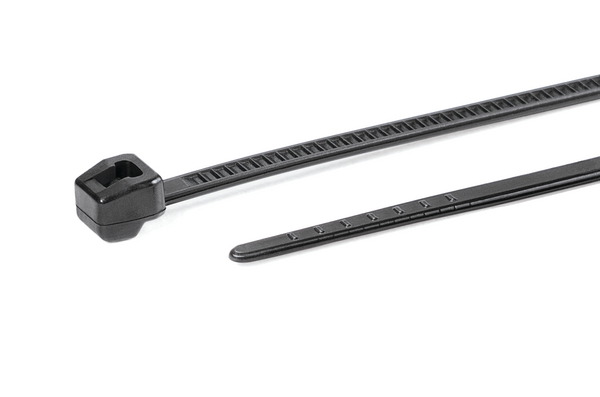 | Krótki opis | Opaska kablowa zewnętrznie ząbkowana 100x2,5 mm, stabilizowana cieplnie, kolor czarny |