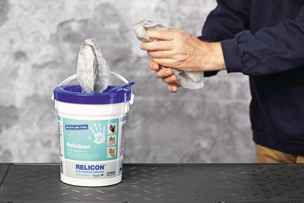 | Zastosowanie | RELICON Reliclean to antybakteryjne, odtłuszczające i szybko schnące ściereczki do czyszczenia rąk. Doskonale sprawdzają się w warsztatach i wszędzie tam gdzie ręce i powierzchnie są mocno zabrudzone. Idealne do czyszczenia mocno zabrudzonych rąk, narzędzi i sprzętu. Usuwają m.in. poliuretan, tłuszcz, oleje, kleje, bitumin, wosk, sadzę, atrament, szczeliwo, farby, pył hamulcowy, pył węglowy itd. |